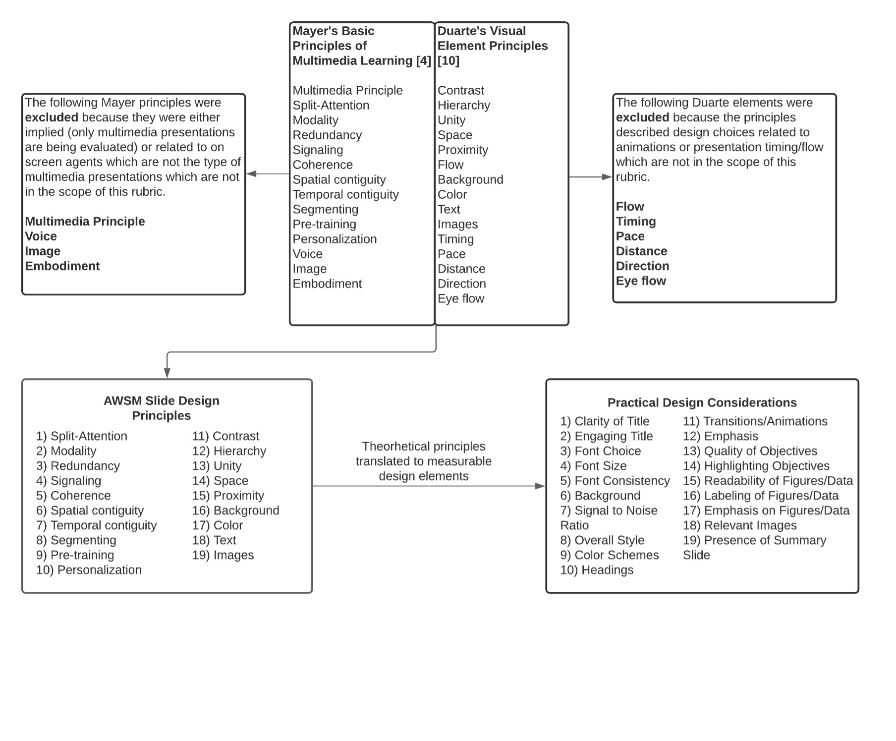 improve slides for educators. Future research will be focused on implementing and validating the slide design survey and ensuring it is easily usable with a high inter-rater reliability and whether