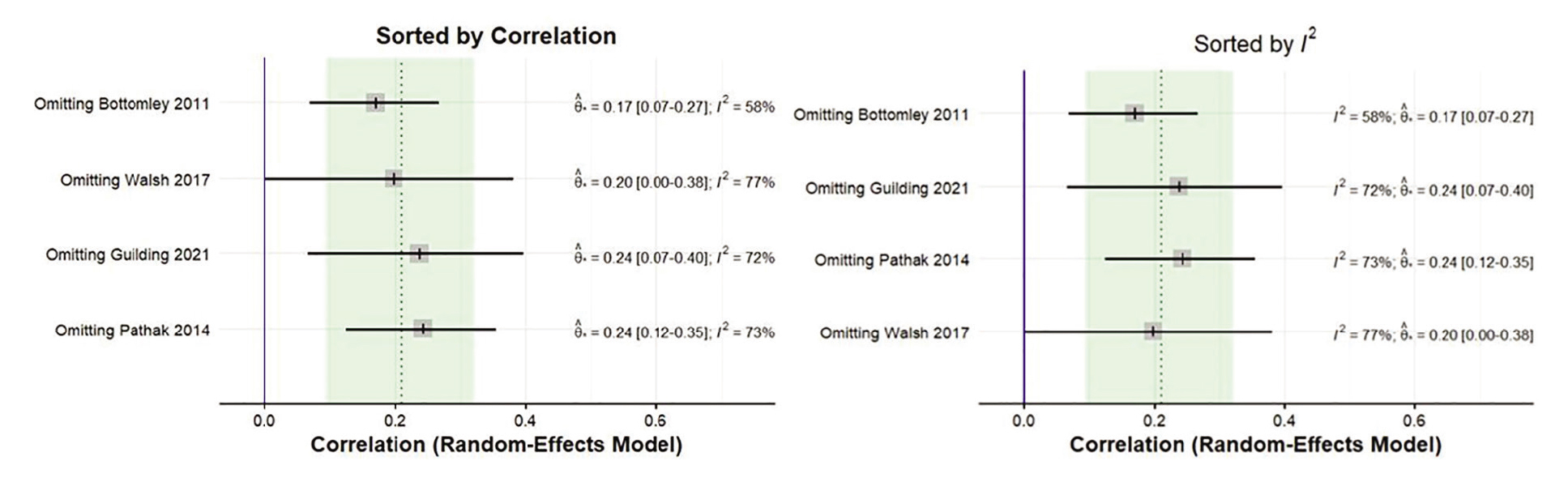 Cochran’s Q test, I2 Statistic and Tau2 were calculated and interpreted to assess for heterogeneity and inconsistency. Funnel plots were generated to detect publication bias. Model robustness was checked through sensitivity analysis by performing influence diagnostics, including standardised residuals and Cook’s distance, and leave-one-out analysis. Subgroup analysis or meta-regression, including Egger’s test, was not performed as originally intended because K < 10, potentially culminating in misleading results ( 22 , 23 ). The R code and data supporting this study are available from the corresponding author on reasonable request.